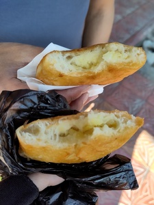 Zum Abendessen gab es sehr viel lecker frittiertes Hühnchen. Neben dem Imbiss war ein richtig gut ausgestatteter Supermarkt. Wir durften dort ein mehrschichtiges Fladenbrot (vielleicht Noni Fatir?) probieren und nahmen eines für das Frühstück mit, natürlich zusammen mit Honig und Zitrone für die kommenden Tage. 😄