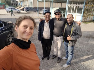 Zurück bei den Rädern sollten wir alles an Essen und Getränken mitnehmen, was wir brauchten. Das war erkennbar weniger, als unsere Freunde dachten. Aber wohin mit alledem? Es ging ein Stück zurück in die nächst größere Stadt. Dort zeigten uns Raful und Jahonzeb stolz ihr Büro. Raful hatte erfolgreich in die Bildung seiner Söhne investiert. Sie wurden alle Unternehmer in unterschiedlichen Bereichen der Baubranche. Dort wurden wir eingeladen, doch noch etwas länger zu bleiben. Doch wir mussten weiter. Der Abschied fiel Nik sichtbar schwer, so viel Herzensgüte sind wir immer noch nicht gewohnt.